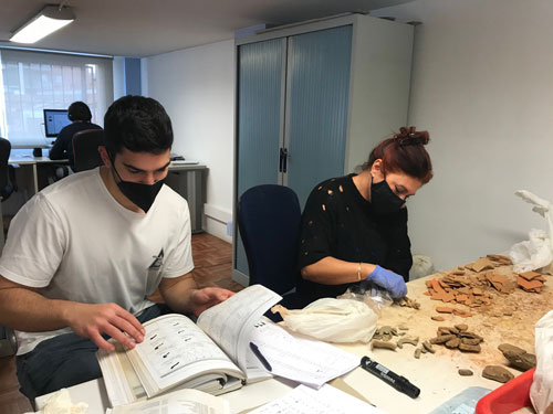 Estudiants del Màster d'Estudis avançats en Arqueologia inicien per primer any, el nou programa de pràctiques extracurriculars del màster, per a preparar-se per al seu futur professional i investigador. En Guillem treballa a la seu de l'empresa d'Arqueologia d'Àtics s.l. supervisat per l'Esther Medina, en l'inventari de materials d'un jaciment gironí dels segles III-I ane i la Cristina, prepara material referencial de grànuls de midó a l'Institut Milà i Fontanals (CSIC), sota la supervisió de Juanjo García-Granero.