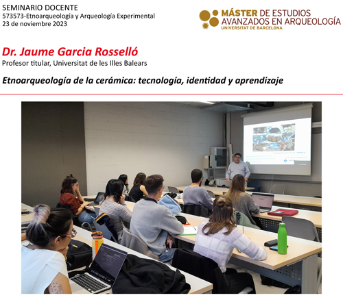 SEMINARIO DOCENTE 573573 - Etnoarqueología y Arqueología Experimental 23 de noviembre 2023 a cargo del Dr. Jaume Garcia Roselló, Profesor titular, Universitat de les Illes Balears