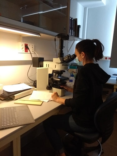 Estudiantes del Máster de Estudios avanzados en Arqueología inician por primera vez, el nuevo programa de prácticas extracurriculares del máster, para prepararse para su futuro profesional e investigador. Guillem trabaja en la sede de la empresa de Arqueología de Áticos S.L. supervisado por Esther Medina, en el inventario de materiales de un yacimiento gerundense de los siglos III-I ane y Cristina, prepara material referencial de gránulos de almidón en el Instituto Milá y Fontanals (CSIC), bajo la supervisión de Juanjo García-Granero.